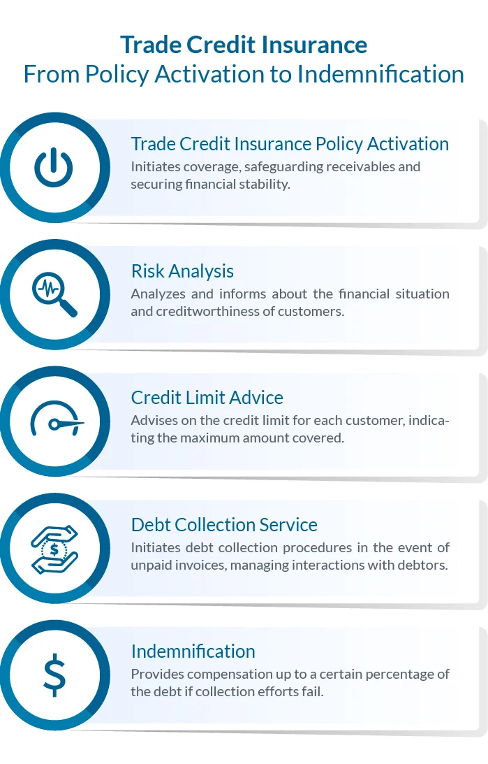 The words trade credit insurance cover a wide range of services. Make sure you have a clear view of what is and is not included in your trade credit insurance policy, especially in terms of the covered risks.